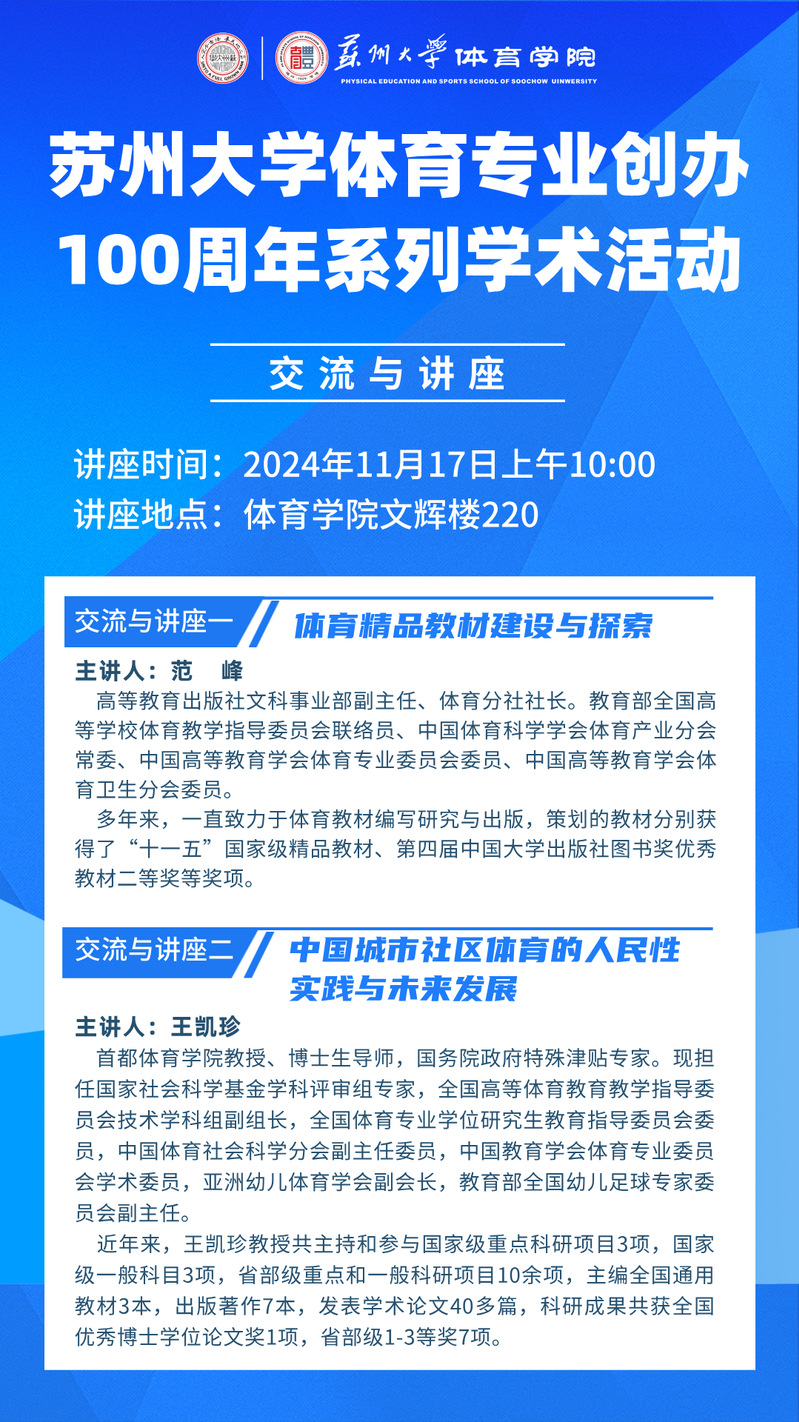 必威西汉姆联体育专业创办100周年系列学术活动——交流与讲座