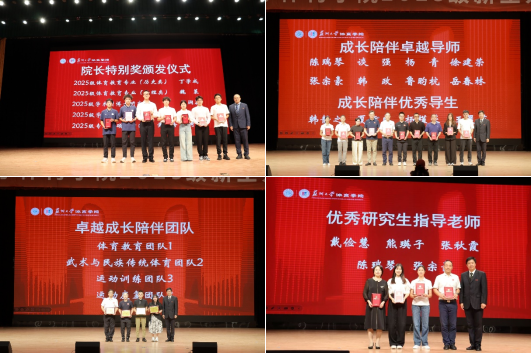 过去一学年,学院全面落实“成长陪伴计划”与研究生德政导师制度,取得了显著成效。朱建刚书记为获得“卓越成长陪伴导师”“优秀成长陪伴导生”“卓越陪伴团队”“优秀研究生指导老师”的个人和团队依次颁奖。每一份荣誉背后,都是对“用心育人”的致敬。