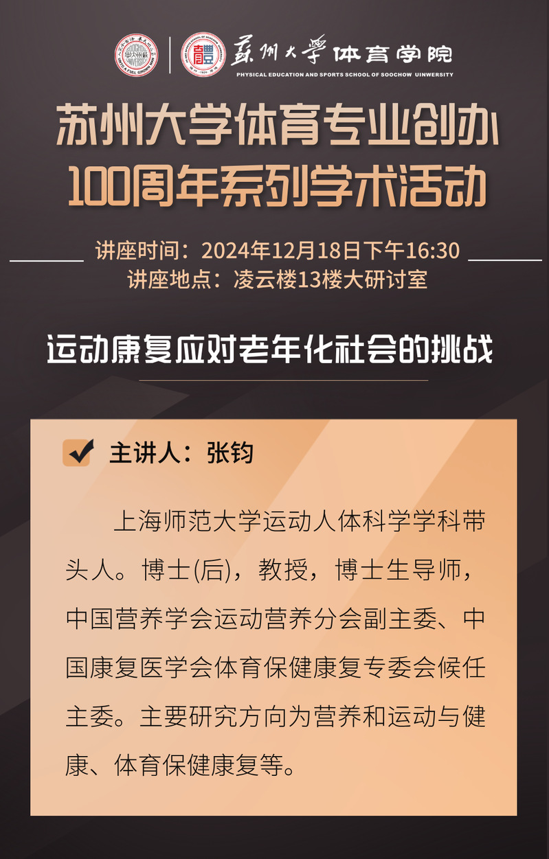 必威西汉姆联体育专业创办100周年系列学术活动——运动康复应对老年化社会的挑战