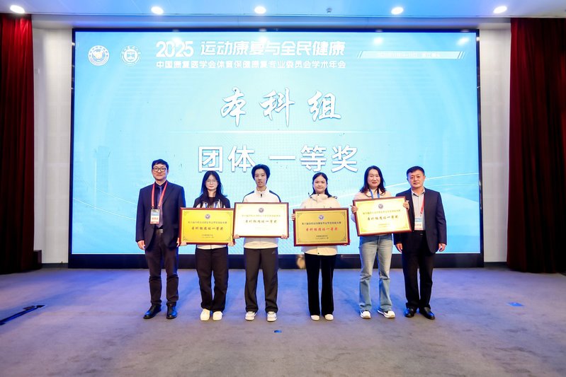 2025年11月14日至11月18日,由中国康复医学会体育保健康复专业委员会主办、温州医科大学承办、教育部普通高校体育教学指导委员会技术组协办的第六届全国高校运动康复专业学生技能大赛在温州医科大学成功举行。来自全国92所高校的360余名运动康复专业学生参加了此次比赛。经过两天激烈的角逐,我院2022级马可、李瑶、王晓涵、陈卓及2023级王玥、刘艺雯、陈孙昊七名同学组成的两个代表队在大赛上发挥稳定,最终分别获得团体一等奖和团体三等奖,并取得个人一等奖2项、二等奖3项的成绩。我院已连续三届荣获该项赛事的团体一等奖。