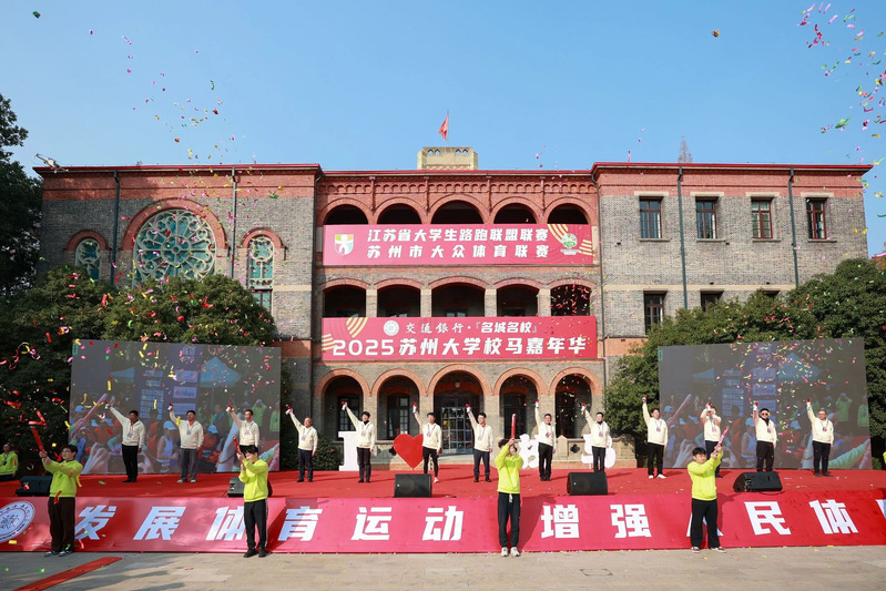 在欢快的旋律中,跑者们齐聚钟楼前的大草坪。苏大学子与幼儿园的小朋友们联袂献上舞龙舞狮、歌舞和啦啦操等精彩演出,为选手们热情助阵。出席活动的领导和嘉宾上台,共同为“名城名校”2025必威西汉姆联校马嘉年华暨江苏省大学生路跑联盟联赛各项赛事鸣笛发枪。