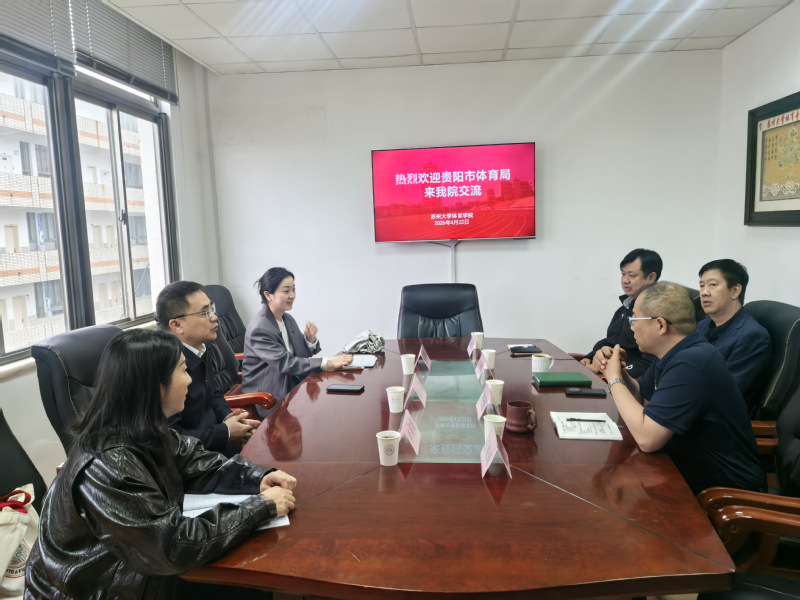 4月22日上午,贵阳市体育局党组成员、副局长金灿,贵阳市体育局直属机关党委专职副书记肖燕萍,贵阳市体育中学学生科科长唐英娥来我院交流。学院党委书记朱建刚,院长陶玉流,党委副书记、副院长丁海峰,副院长张大志出席交流会。