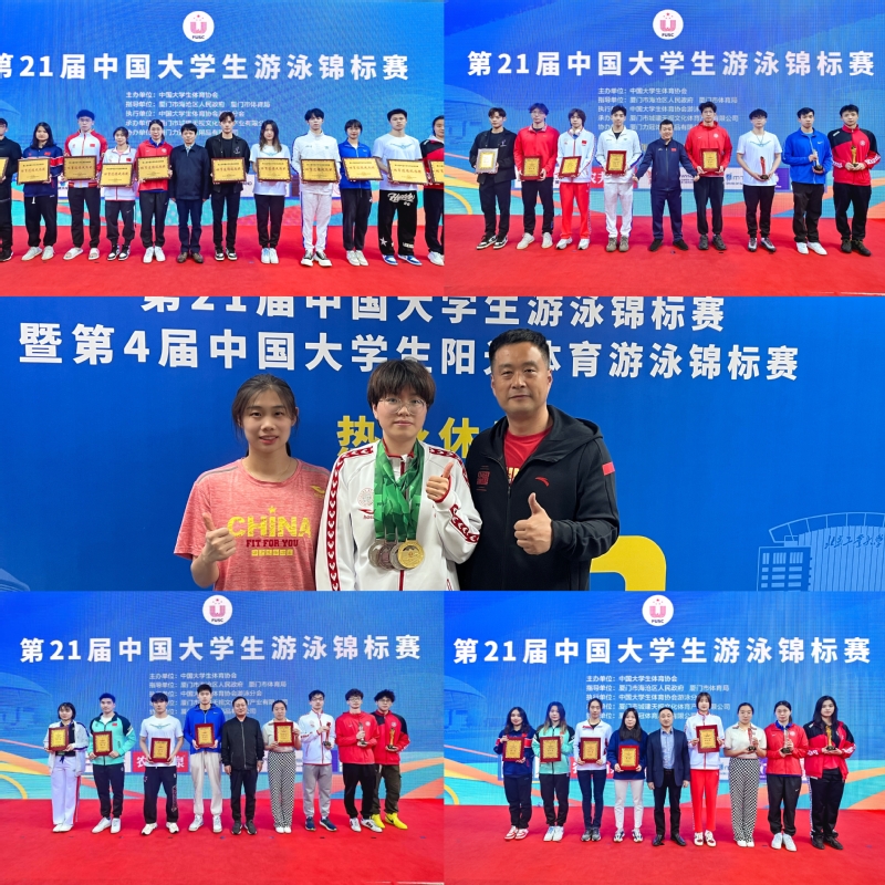 3月28日,第21届中国大学生游泳锦标赛在厦门海沧体育中心游泳馆拉开帷幕。经过四天精彩比拼,我校游泳队共斩获1枚金牌、4枚银牌、4枚铜牌,并打破1项赛会记录,获得团体总分第三名的好成绩,代表队还获得“体育道德风尚奖”。